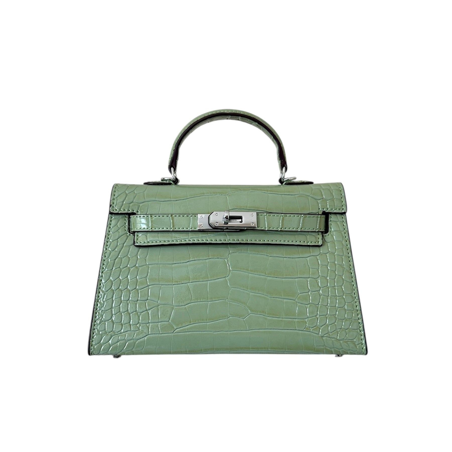 Color: mint green, silver hardware, shiny croco effect